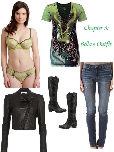 I found a cute bra and thong set, my distressed skinny jeans, as well as a daggered heart hip-length tee. Then I went to my closet to find my cropped black leather jacket, as well as my calf-length black leather boots with the low heel. I placed it all on the bed, then smirked at knowing that Alice wouldn’t be dressing me anymore. God, I hated those preppy boring clothes she put me in.