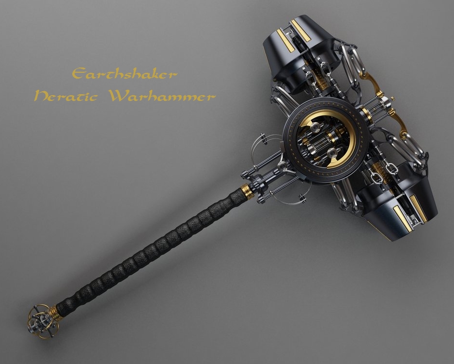 What appeared in my hand was the most impressive black, silver, and gold warhammer I had ever seen. This thing made even fantasy warhammers look like baby rattles. I couldn’t help but laugh out loud, “Fuck, yeah!”