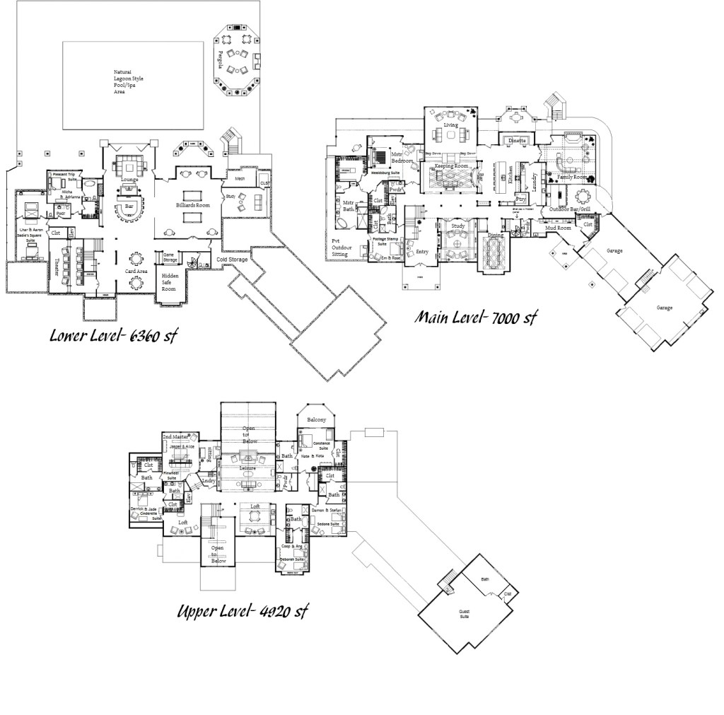 Not much later, Peter was taking us on a tour of the house. He said casually, “The house is a lodge-style set on three levels, with 18,280 square feet between the three floors. There are nine bedrooms; two on the downstairs level, two here on the main level, and 5 on the upstairs level. Each bedroom has its own private bath, plus there is at least one public powder room on each level. There’s also a bar on each level, but the one upstairs in the larger loft is minimally stocked. With the property bein’ as secluded and secure as it is, we may often have crew stop in when we aren’t holdin’ parties, which is why the house is so large. Are ya with me so far?”
